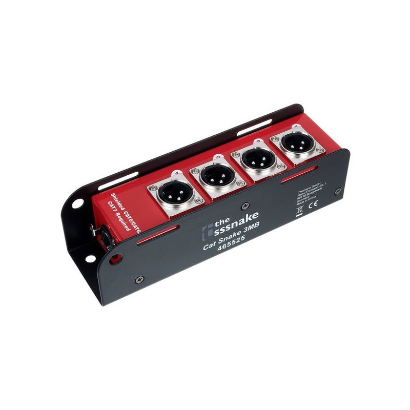 Presentamos el versátil divisor pasivo sssnake Cat Snake 3MB, diseñado para optimizar tu configuración de audio. Con conectores RJ45 hembra a 4 macho XLR, transmite eficientemente 4 canales de A a B, aprovechando todo el potencial de los cables de red.