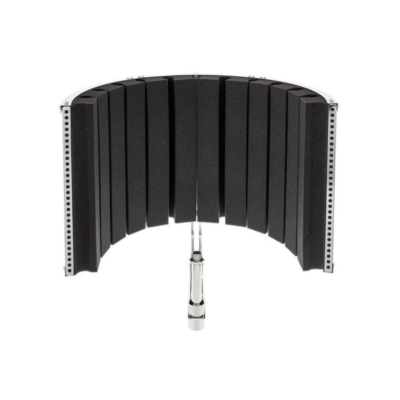 El t.bone Micscreen LE es un panel de aislamiento acústico portátil diseñado para mejorar la calidad de grabación en estudios caseros o portátiles. Su diseño compacto permite reducir el ruido ambiente y los reflejos de sonido, creando un entorno controlado alrededor del micrófono para obtener grabaciones más limpias y profesionales.