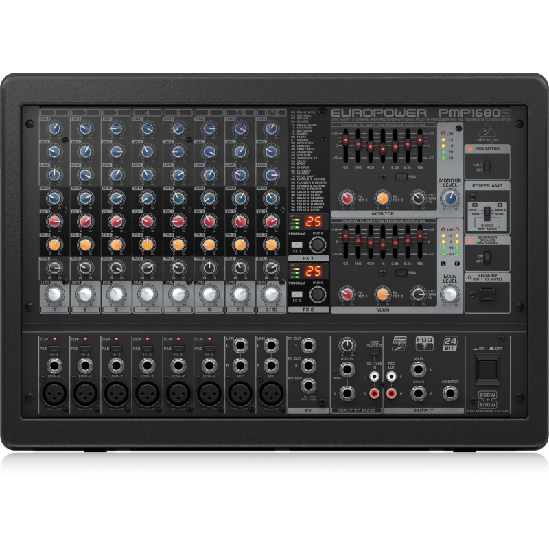 La Behringer PMP 1680S es una mezcladora potenciada de alto rendimiento con 10 canales, efectos digitales integrados y 1600 vatios de potencia. Diseñada para bandas y eventos en vivo, combina practicidad con calidad sonora. Su interfaz intuitiva facilita ajustes rápidos, mientras que su construcción resistente asegura durabilidad. Ofrece una solución todo en uno para refuerzo sonoro portátil.