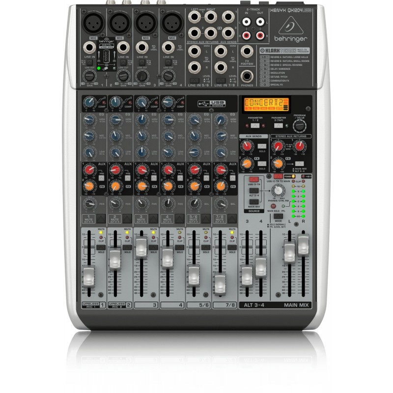 Mezclador premium de 12 entradas y 2/2 bus con preamplificadores y compresores de micrófono XENYX, procesador Klark Teknik Multi-FX, opción inalámbrica e interfaz de audio/USB