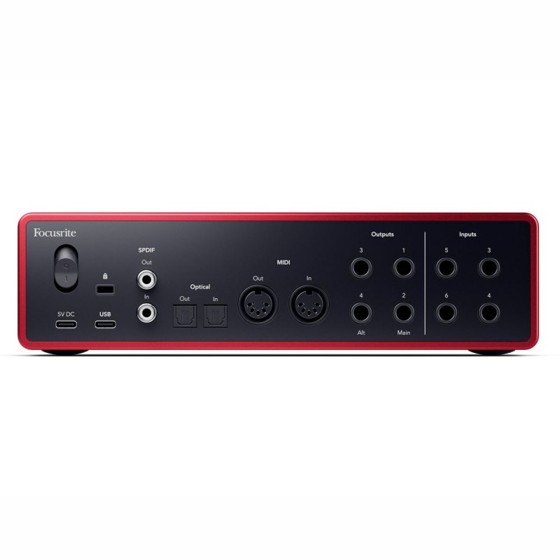 La interfaz de audio Focusrite Scarlett 16i16 4ta Gen ofrece 16 entradas y 16 salidas, ideal para grabaciones y producciones en vivo de gran escala. Con preamplificadores Scarlett y conversión A/D de alta calidad, proporciona un sonido limpio y detallado. Su conectividad USB-C y diseño robusto aseguran un rendimiento confiable y fácil integración en cualquier configuración profesional.