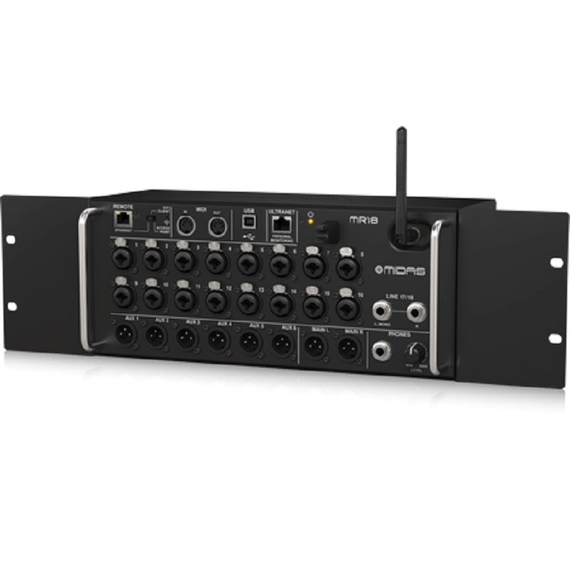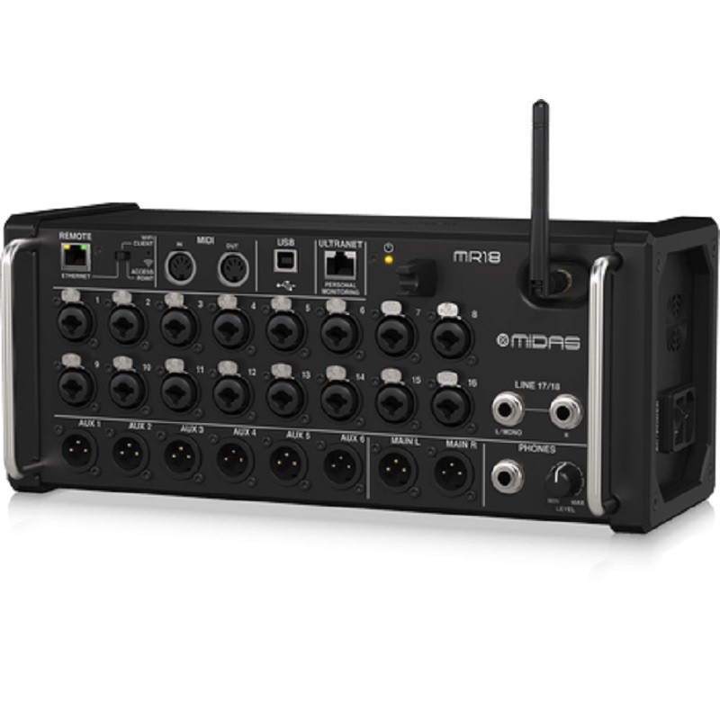 El Midas MR18 es un mezclador digital compacto y versátil diseñado para aplicaciones en vivo y de estudio. Con 18 entradas y 16 salidas, ofrece una calidad de sonido excepcional. Cuenta con preamplificadores Midas y procesamiento digital de alta calidad. Además, ofrece conectividad Wi-Fi integrada para control remoto a través de dispositivos móviles y es compatible con la grabación multi-pista.