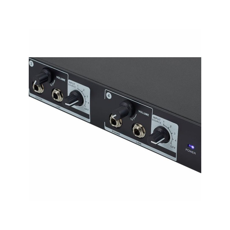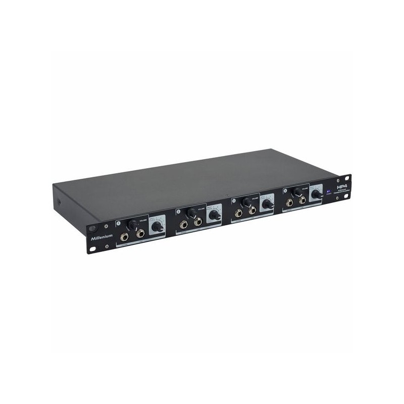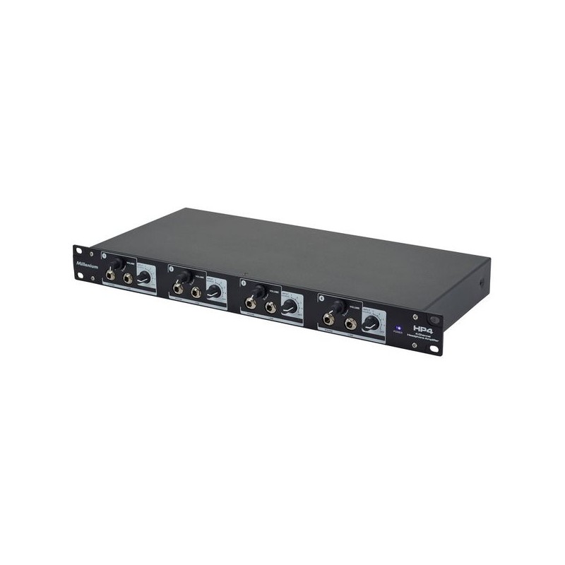 El Millenium HP4 Headphone Amplifier es un amplificador de auriculares compacto y potente. Con cuatro salidas ajustables individualmente, ofrece una calidad de sonido excepcional y es ideal para estudios de grabación, ensayos y uso personal. Robustez y versatilidad garantizadas.