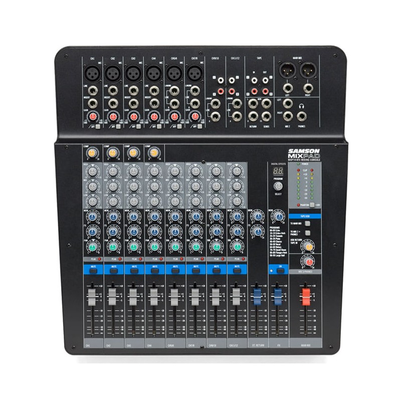 El MXP144FX BK de Samson es un mezclador analógico de 14 canales, diseñado para ofrecer un sonido claro y versátil en todo tipo de situaciones. Con efectos digitales incorporados, entradas balanceadas y controles intuitivos, es ideal para presentaciones en vivo y grabaciones. Su construcción robusta y su diseño compacto lo hacen fácil de transportar y utilizar en cualquier entorno.