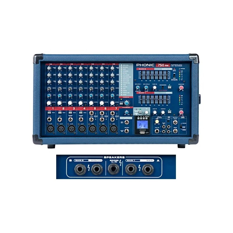 Combina la funcionalidad de un mixer y un amplificador de potencia en un solo dispositivo. Con 6 canales, 220W de potencia, y características modernas como USB y Bluetooth, es una herramienta esencial para músicos en vivo. Su versatilidad permite mezclar y amplificar fácilmente, y su conectividad USB y Bluetooth simplifica la reproducción de pistas o el control desde dispositivos móviles.