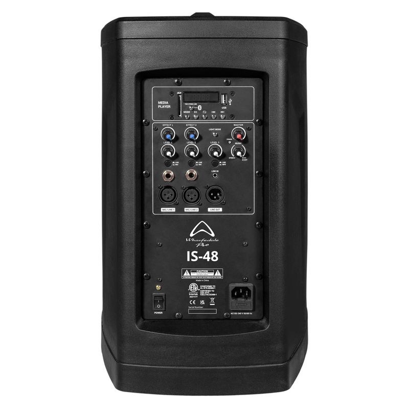 IS-48 de Wharfedale: Un sistema de array de línea portátil que presenta un diseño de columna de 3 secciones. Dos secciones albergan iluminación LED interna, mientras que la tercera contiene cuatro controladores de rango completo. Los conectores incorporados facilitan la configuración y el almacenamiento.