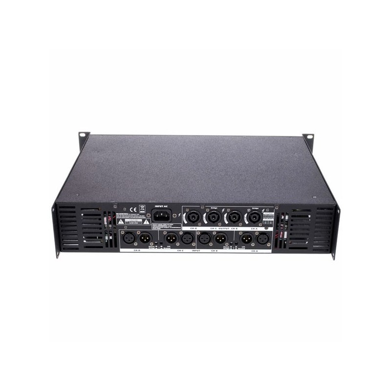 The t.amp TSA 4-700 es una etapa de potencia de cuatro canales con 700W por canal, diseñada para sistemas de sonido profesionales. Su eficiencia energética y diseño robusto la hacen ideal para instalaciones de refuerzo sonoro en eventos en vivo, teatros y clubes.