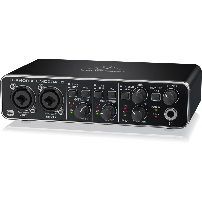 El increíble U-PHORIA UMC204HD cierra la brecha entre tu creatividad y tus fans. Esta increíble interfaz estudio USB 2.0 te permitirá grabar tu próxima obra maestra en minutos con toda la conectividad necesaria para tus micrófonos, guitarras, teclados e incluso dispositivos MIDI.