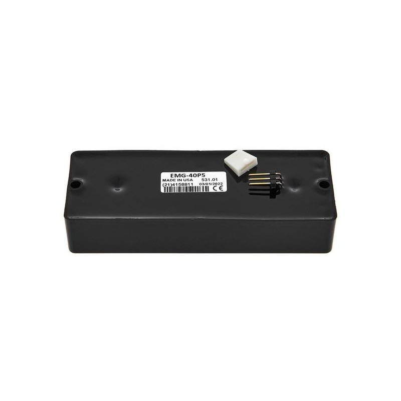 La pastilla EMG 40P5 está diseñada para bajos de cinco cuerdas, brindando salida potente, claridad extrema y bajos definidos. Su diseño activo elimina ruidos y mejora la dinámica del instrumento. Ideal para estilos modernos como metal, rock y funk, ofrece un sonido profesional con excelente respuesta tonal.