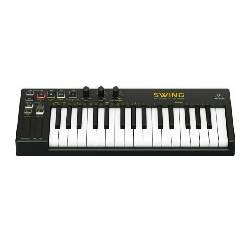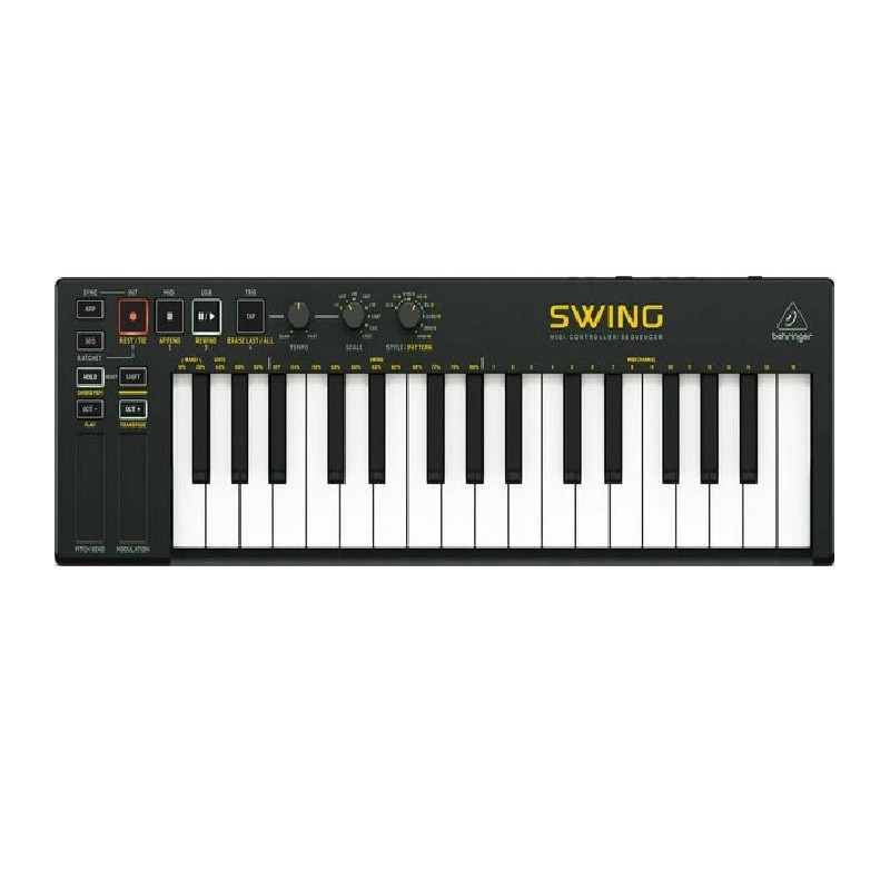 El Behringer Swing es un controlador MIDI y secuenciador portátil. Con sus 16 pads sensibles a la velocidad y a la presión, te permite tocar ritmos y melodías de forma intuitiva. También cuenta con un secuenciador de 64 pasos, efectos integrados y conectividad MIDI y USB. Es ideal para músicos y productores que buscan una herramienta compacta y versátil para la creación musical en movimiento.