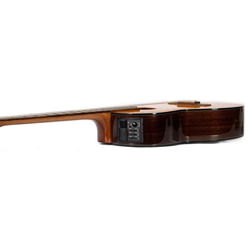La GC6CE NT de Takamine es una guitarra electroacústica con cuerdas de nylon, diseñada para ofrecer un tono cálido y rico. Su tapa de abeto selecto y cuerpo de caoba brindan una resonancia equilibrada, mientras que el cutaway facilita el acceso a los trastes altos. Equipada con un preamplificador Takamine con ecualizador y afinador, es ideal para presentaciones y grabaciones.
