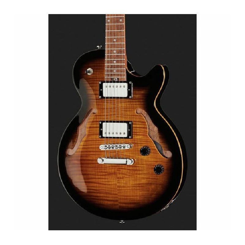La guitarra Aeolus combina el carácter de un semi-hueco con el diseño de un solo corte. Con cuerpo de caoba y mástil de arce tostado, ofrece una respuesta ágil y tonos cálidos. Los humbuckers Tesla VR-2 Alnico-5 brindan limpiezas ricas y gruñidos para rock, con la opción de división de bobina para sonidos de bobina simple. El acabado brillante resalta las maderas tonales de calidad.