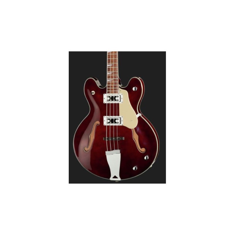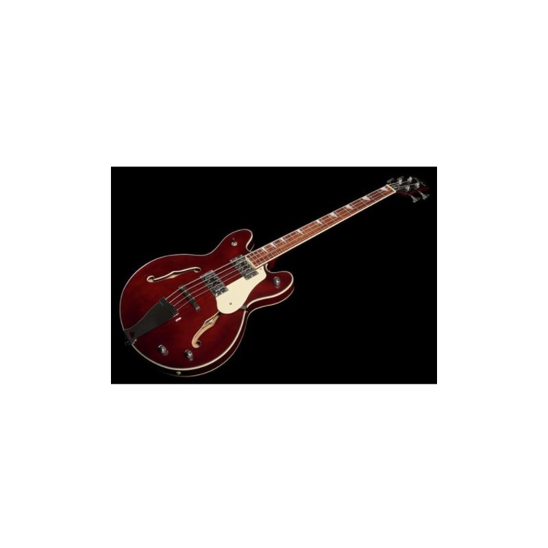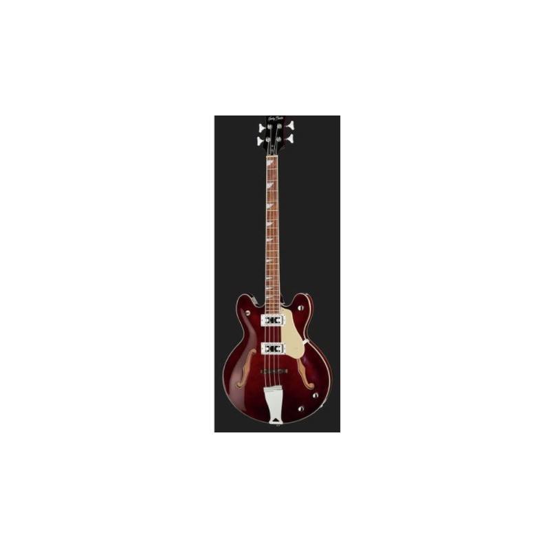El cuerpo semiacústico y el mástil empotrado del HB-60 están hechos de arce, mientras que el diapasón de corazón púrpura está cargado con 22 trastes. La unión del cuerpo, el magnífico golpeador color crema y su exquisito acabado Walnut Brown exudan mucho estilo vintage. Dos humbuckers vintage brindan un tono cálido y redondo ajustado con dos controles de volumen y un interruptor de tres vías.