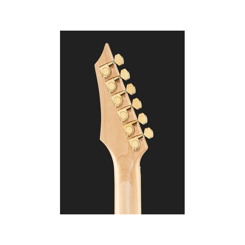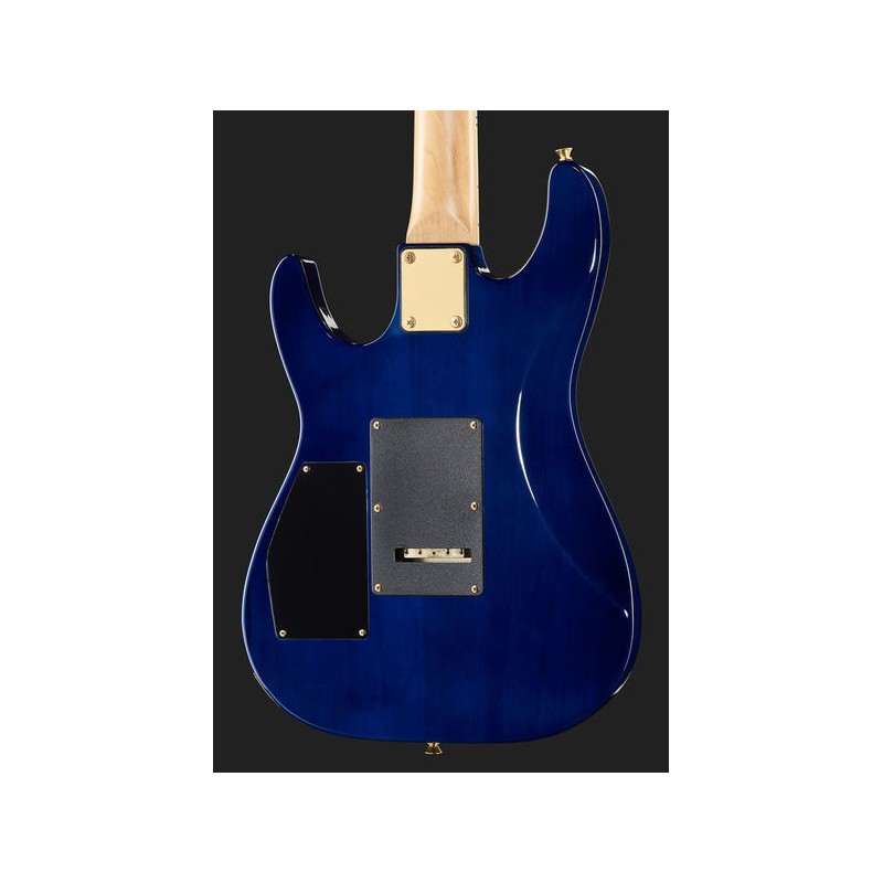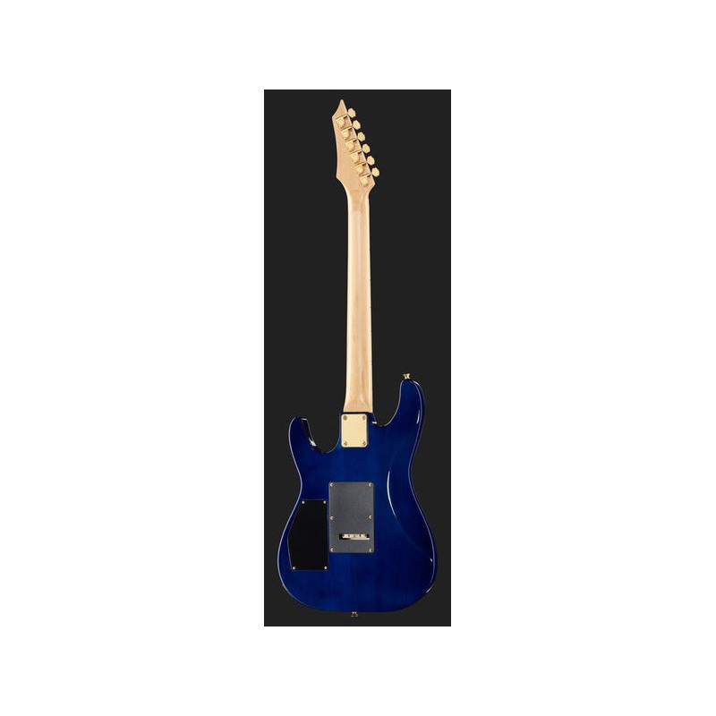 El S-620 TR de nuestra serie Rock tiene muchos trucos bajo la manga. La forma lujosa del cuerpo de tilo de doble corte armoniza maravillosamente con la tapa arqueada. La hermosa estética se completa con un impresionante acabado azul transparente. Los humbuckers de alta ganancia pueden emitir un volumen importante si es necesario y sonar muy bien en cualquier estilo de música rock. El mástil de arce atornillado está equipado con un diapasón de roseacer cargado con 24 trastes, lo que proporciona mucho espacio para sus riffs y partes principales. Y si quieres ser un poco más inventivo con el sonido de tu guitarra, el sistema de trémolo Floyd Rose deja volar tu imaginación.