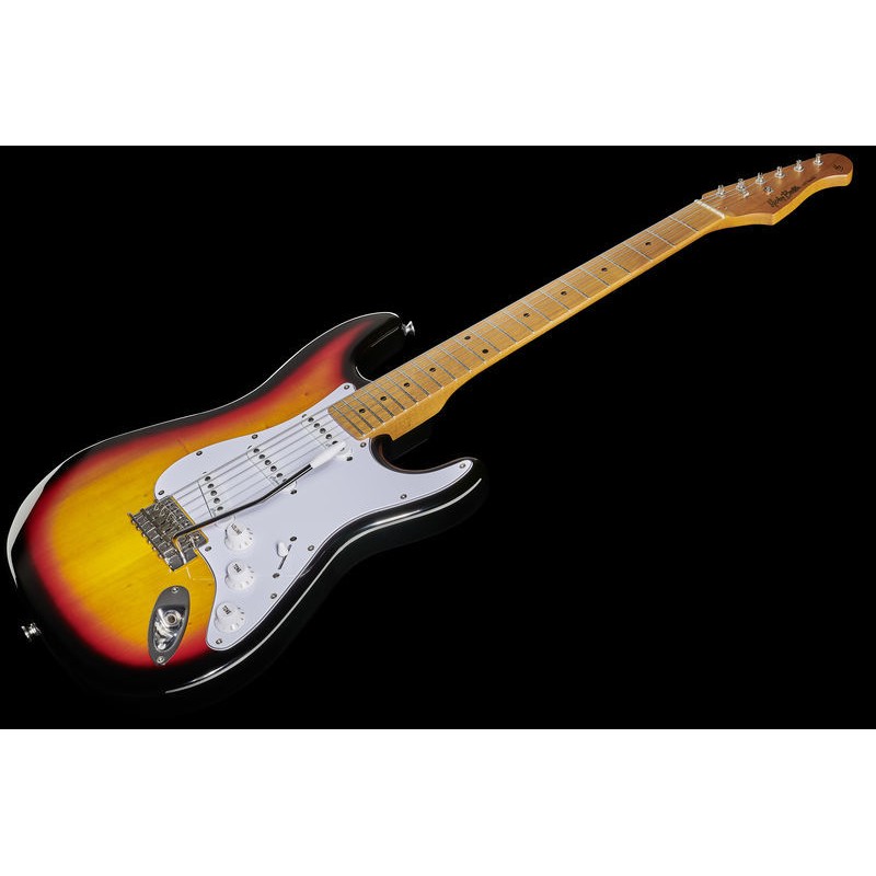 Esto es lo que llamas estilo vintage! Este pequeño tesoro está equipado con 3 bobinas simples de estilo Alnico 5 Vintage ST, que le brindan excelentes sonidos para cualquier estilo popular, desde pop hasta blues, rock y más. Los afinadores de estilo Kluson y un trémolo sincronizado garantizan una estabilidad de afinación impresionante. Prueba esta guitarra: te llevará a lugares que nunca soñaste