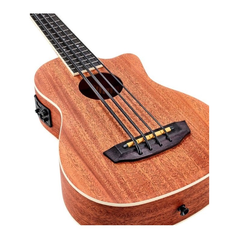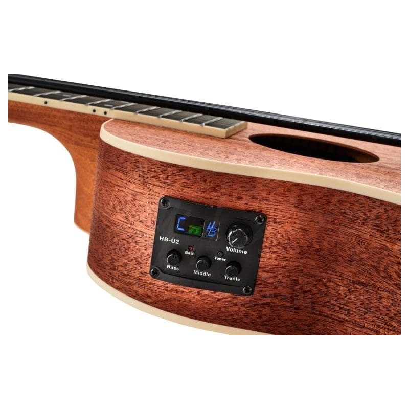 El Harley Benton UkeBass Mahogany es un ukelele bajo compacto fabricado en caoba, que destaca por su sonido profundo y cálido. Con cuerdas especiales de poliuretano, produce un tono sorprendentemente similar al de un contrabajo. Incorpora pastilla activa para amplificación. Es perfecto para bajistas que buscan portabilidad sin sacrificar calidad de sonido ni versatilidad en directo.