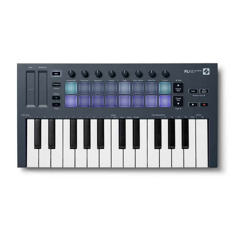 El Novation FLkey Mini es un controlador MIDI compacto diseñado para usuarios de FL Studio. Con teclas sensibles, 16 pads RGB y controles dedicados, permite integrar fácilmente funciones como mezcla, transporte y ajuste de parámetros. Ideal para músicos y productores que buscan creatividad y portabilidad en un diseño práctico y elegante.