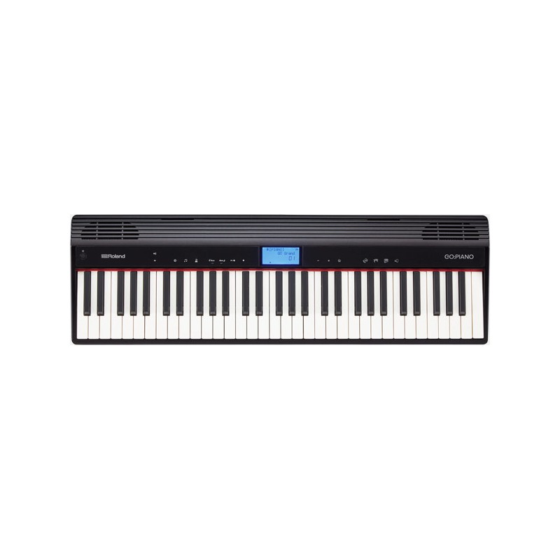 El piano digital GO-61P de Roland es ideal para músicos en movimiento. Compacto, ligero, con excelente calidad de sonido, acción de teclado sensible y características como altavoces integrados y conectividad Bluetooth.