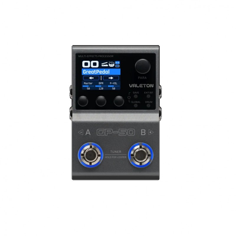 Valeton GP-50 es un procesador multiefectos compacto para guitarra que integra más de 100 efectos, simulaciones de amplificador y carga de IR para crear sonidos versátiles. Permite usar hasta nueve módulos simultáneamente y guardar presets personalizados. Incluye looper, afinador, conectividad USB y Bluetooth, además de batería recargable, ideal para práctica, grabación y presentaciones en vivo.